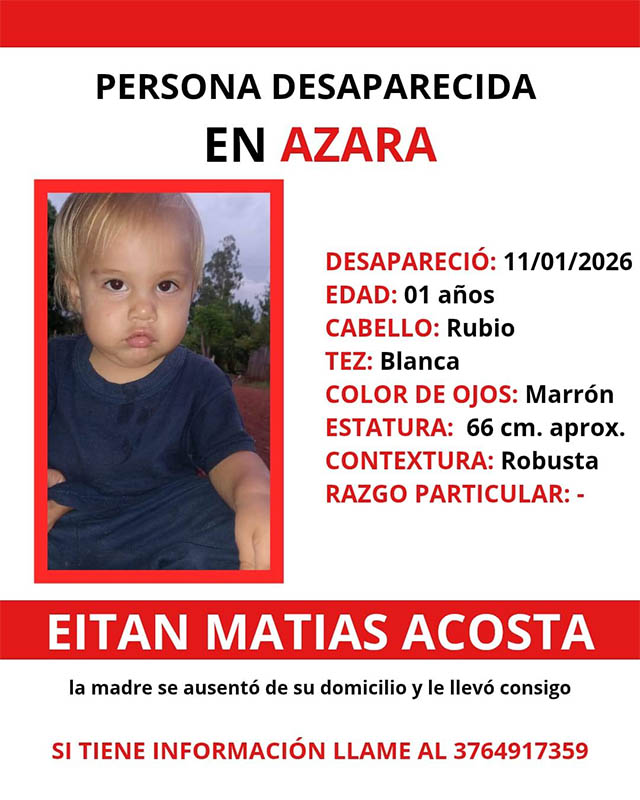 Según se informó oficialmente, la joven identificada como Karen Anahí Acosta se retiró de su vivienda junto a su hijo y, hasta el momento, no se tienen novedades sobre su paradero, por lo que se activó el pedido de búsqueda.